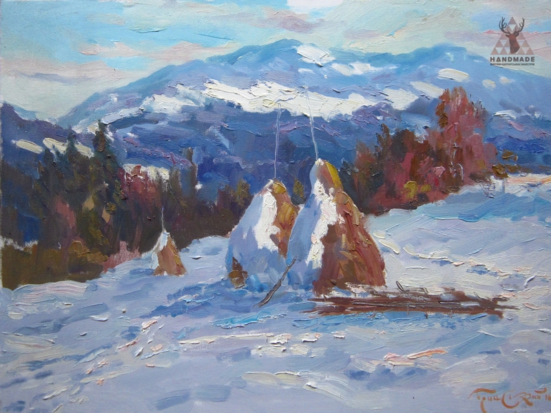 Полотно, олія "Сонячний день у Пилипці". Розмір 55*73 см. Відомий український художник: Богдан Бринський (м. Івано-Франківськ).