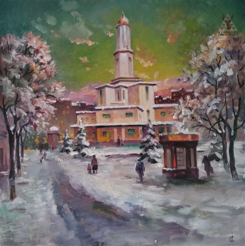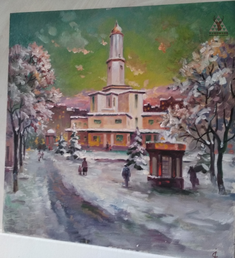 Прикарпатський художник Процьків Іван, картина "Івано-Франківськ. Зима на площі ринок". Картон, олійні фарби.