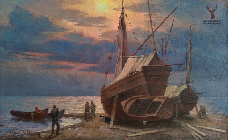 Художник Осадца Зиновий, член союза художников Украины. Картина "Вечер на море. Клайпеда, Литва". Выполнение 2017 года. Холст, масляные краски. Размер: 50*80 см. Без рамки.