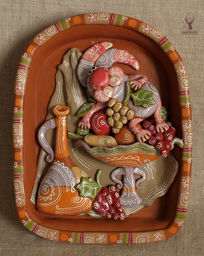 Натюрморт с зайчиком и виноградом. Скульптурки, косовская керамика. Размеры 22.5*17*5.5 см. Срок изготовления - 30 дней.