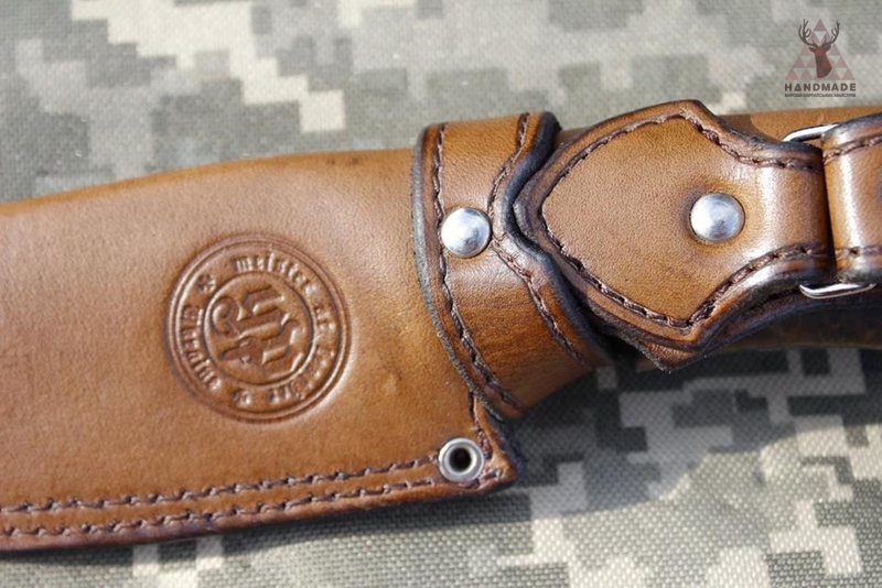 Чехол для ножа ручной работы. Выполнение индивидуально под нож. Кожа, металл. Цвет натуральный, черный.