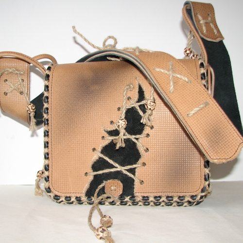 Сумка шкіряна оздоблена декоративним шнуром