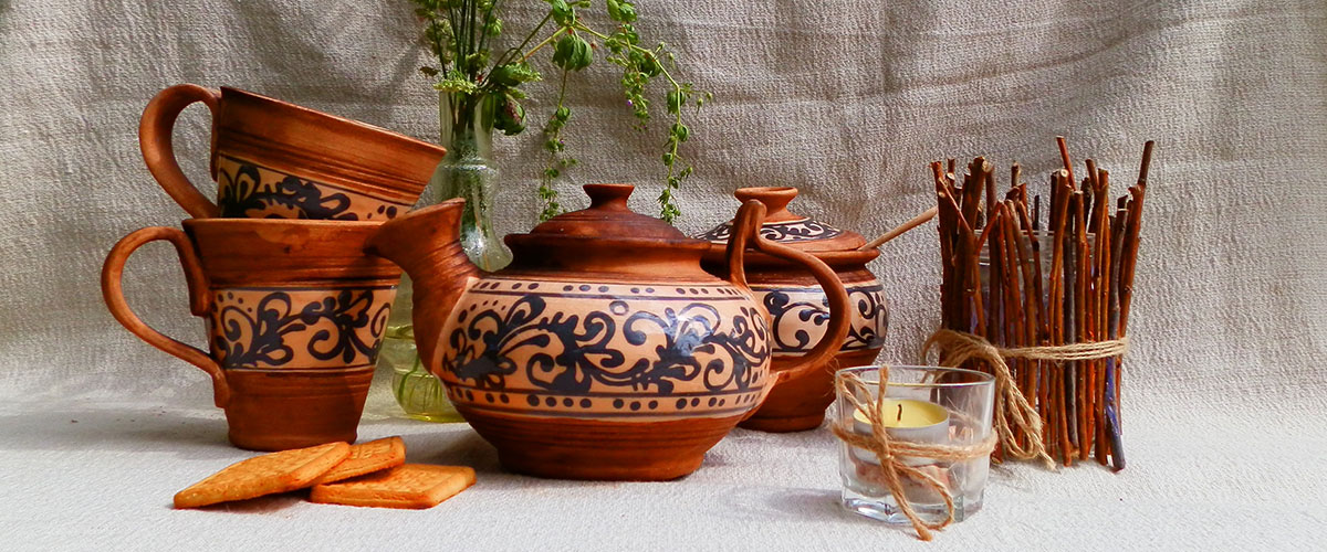 Посуд, глечики, керамічні горщики для квітів, чайні набори, турки, цукерниці, піали