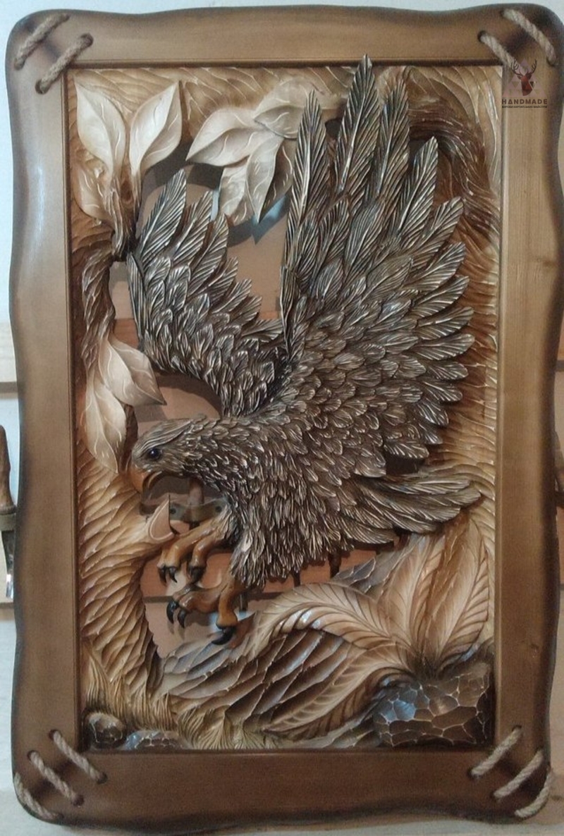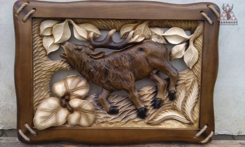 Рельефные панно с изображением зверей. Резные картины из дерева используются как самостоятельные изделия в виде сувениров, украшения интерьера, а также как элементы отделки фасадов мебели, дверей или шкафы, стеновых панелей и т.д.