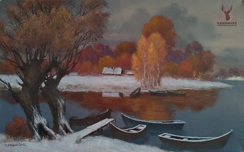 Художник Осадца Зиновий, член союза художников Украины. Картина "Ранний снег". Выполнение 2015 года. Холст, масляные краски. Размер: 50*80 см. Без рамки.