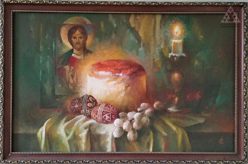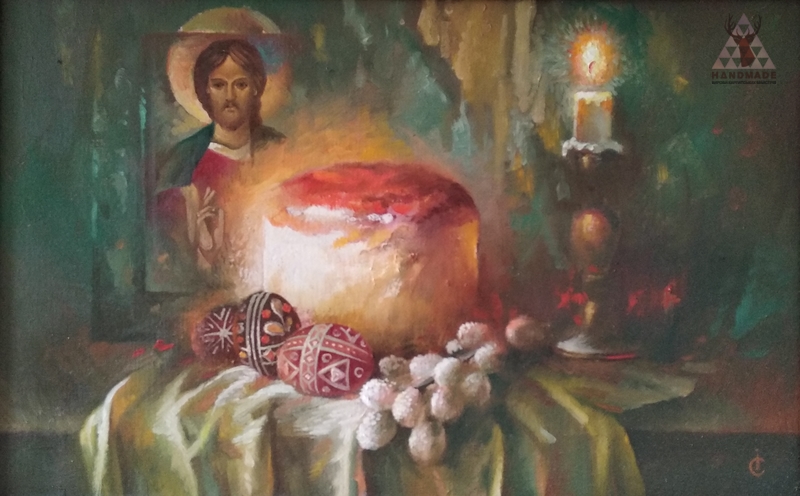 Прикарпатский художник Процькив Иван, картина "Пасхальный натюрморт". Холст, масляные краски.
