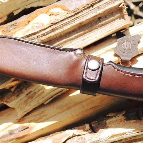 Чехол для ножа, ручная работа. Выполнение индивидуально под нож. Кожа, металл. Цвет натуральный, черный.