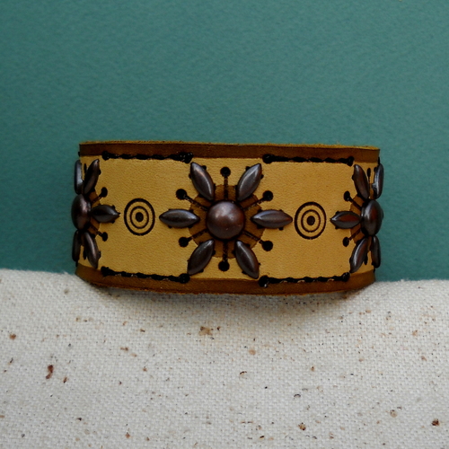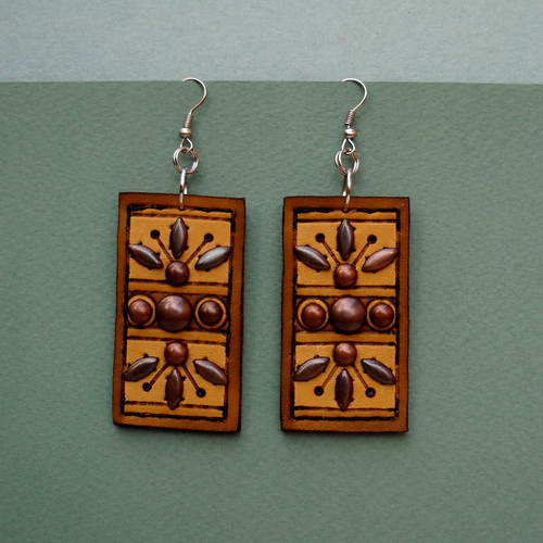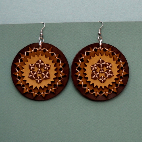 Кулон. Размеры: 8.5*8.5 см. Материалы: кожа, морилка, медные "крабики", металлическая фурнитура, синтетическая нить. Техники: выжигание, тонировка, отделка металлом и ручная прошивка.