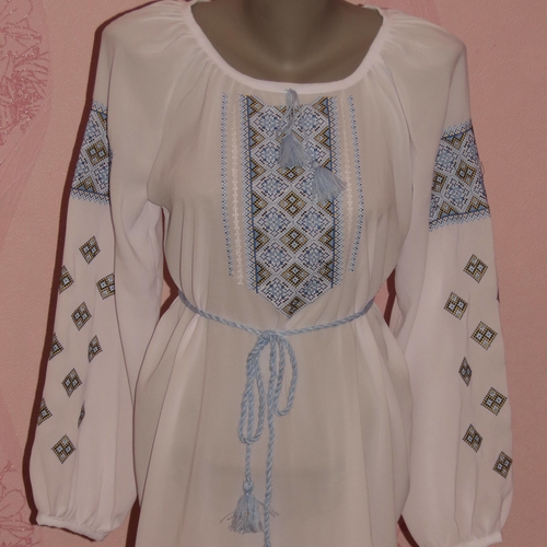 Женская вышиванка, машинная вышивка. Материал шифон. Все размеры.