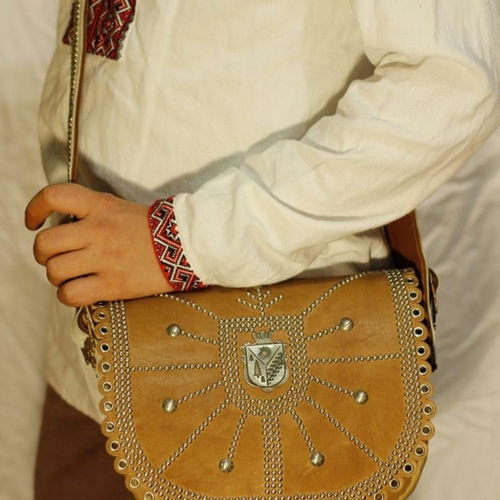 Сумка, розмір 25*25*8 см. Шкіра рослинного дублення, клішеве тиснення, оздоблення декоративним шнуром. Колір натуральний, коричневий. Термін виконання - 14 днів.